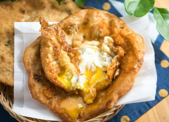 - 加九層塔末:香氣爆炸!臺式鹽酥雞風味炸蛋餅誕生!