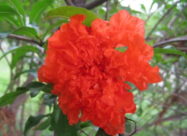 花朵的顏色和大小因品種而異,普通石榴的花通常是鮮紅色,直徑約3-5公分;重瓣石榴的花則更大,可能到6公分。葉子在生長季節會茂密地長出,秋天時會變黃掉落,這是正常的。枝幹則會隨著年齡變粗,老枝看起來更有質感。我種的一株石榴花,已經三年了,枝幹現在粗壯得像小樹一樣,開花時整株都是紅彤彤的,超級美。不過,石榴花有時候會長出一些不規則的枝條,需要修剪,否則會影響美觀。