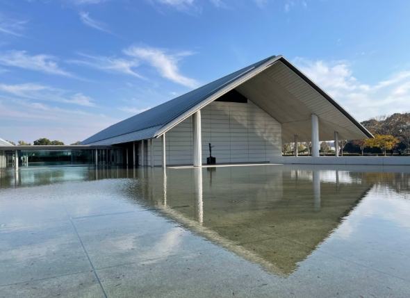 - 晴天大推: 藍天白雲映在水面上,建築光影變化豐富,是佐川美術館最美的狀態。